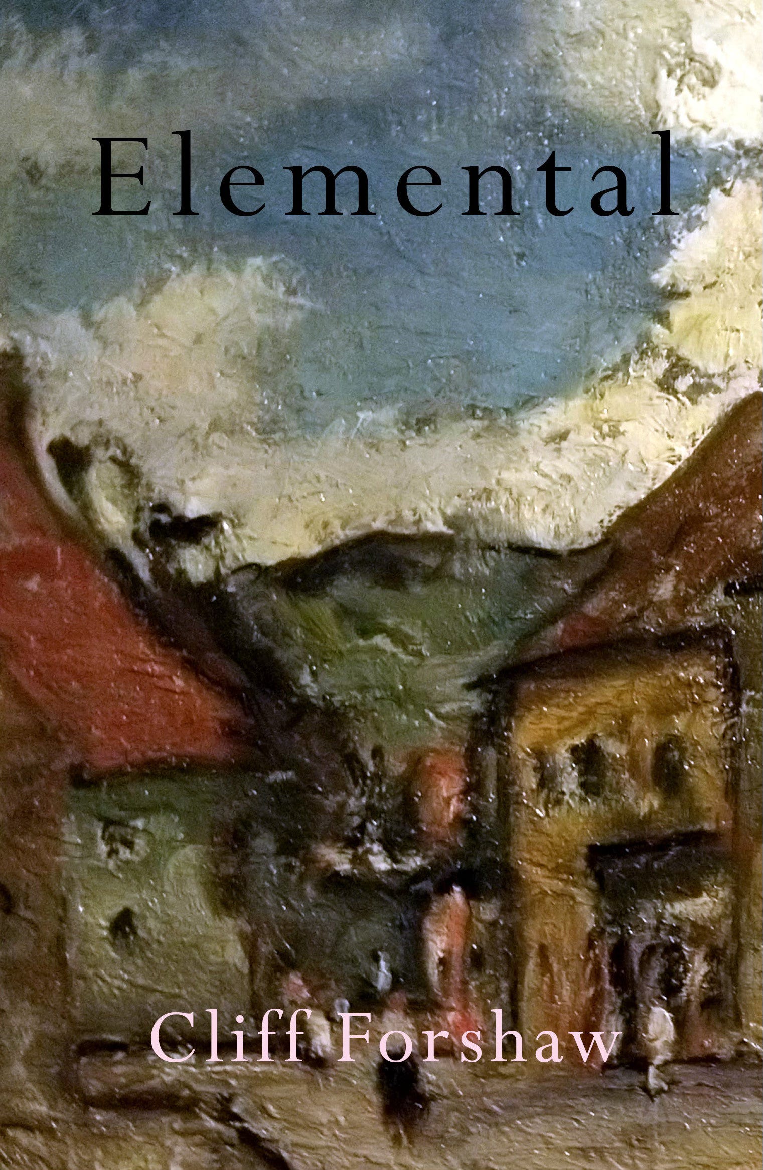On the cover is a painting of two humble cottages. They’re roughly rendered in thick, muddy-coloured oils and squat at the foot of a dark mountain under an ominously clouded sky. The location doesn’t matter. Who lives there doesn’t matter. Maybe it’s you. Maybe me. It’s bleak and oppressive. Storms are on their way.